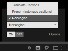 Figure: Captions listed: French (automatic captions), Norwegian.